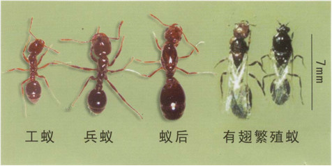 6、白蟻屬不完全變態,由卵到成蟲經過幼蟻或若蟻期、無蛹期;螞蟻屬完全變態昆蟲,由卵到成蟲經過幼蟲期和蛹期。